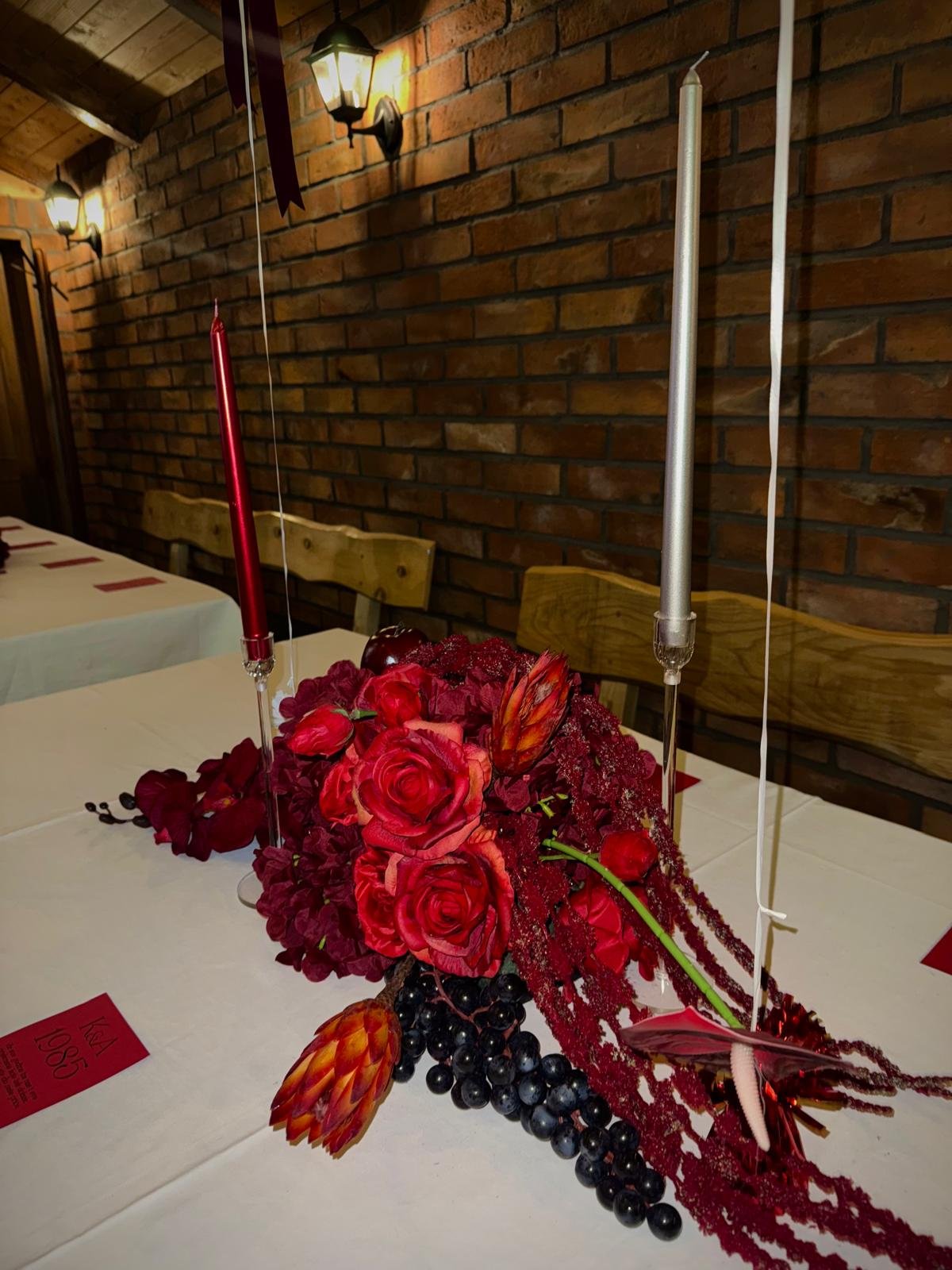 Dekoracija stola – zeleni anthuriumi i bijele ruže
