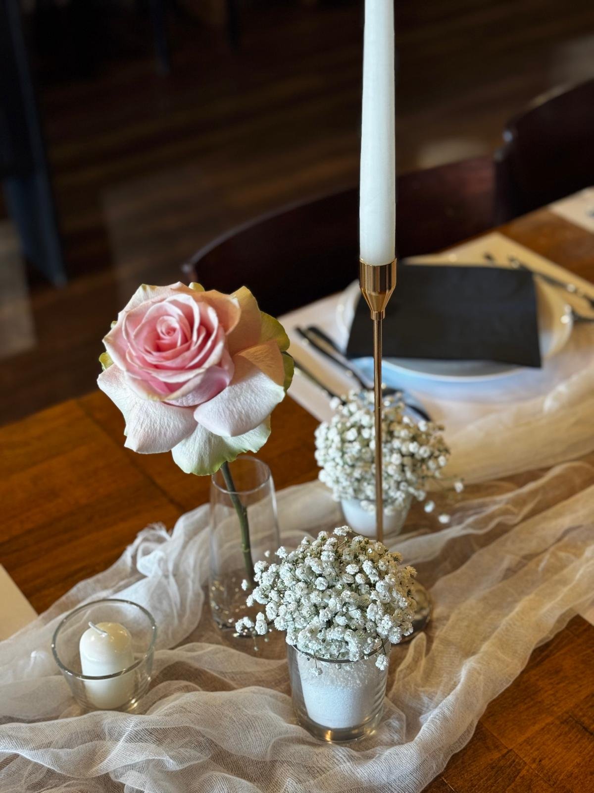 Dekoracija stola za krštenje – nježno roza ruže i svijeće
