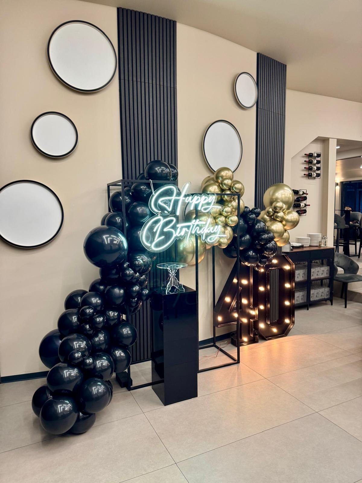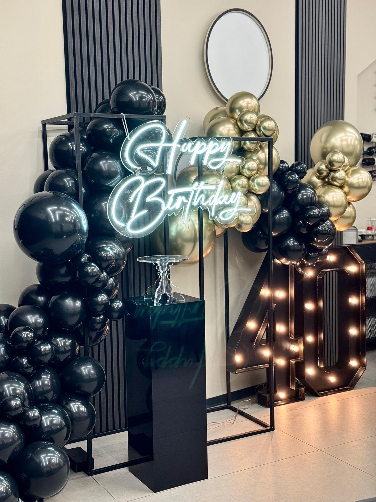 Black Neon Party – 30 Dekoracija za muški 30. rođendan s crnim balonima, neonskim ‘Happy Birthday’ natpisom i svjetlećim brojem 30 stvara moderan i upečatljiv party ambijent s urbanim club vibe-om. Date: February 21, 2026 Category: Muškarci Share: