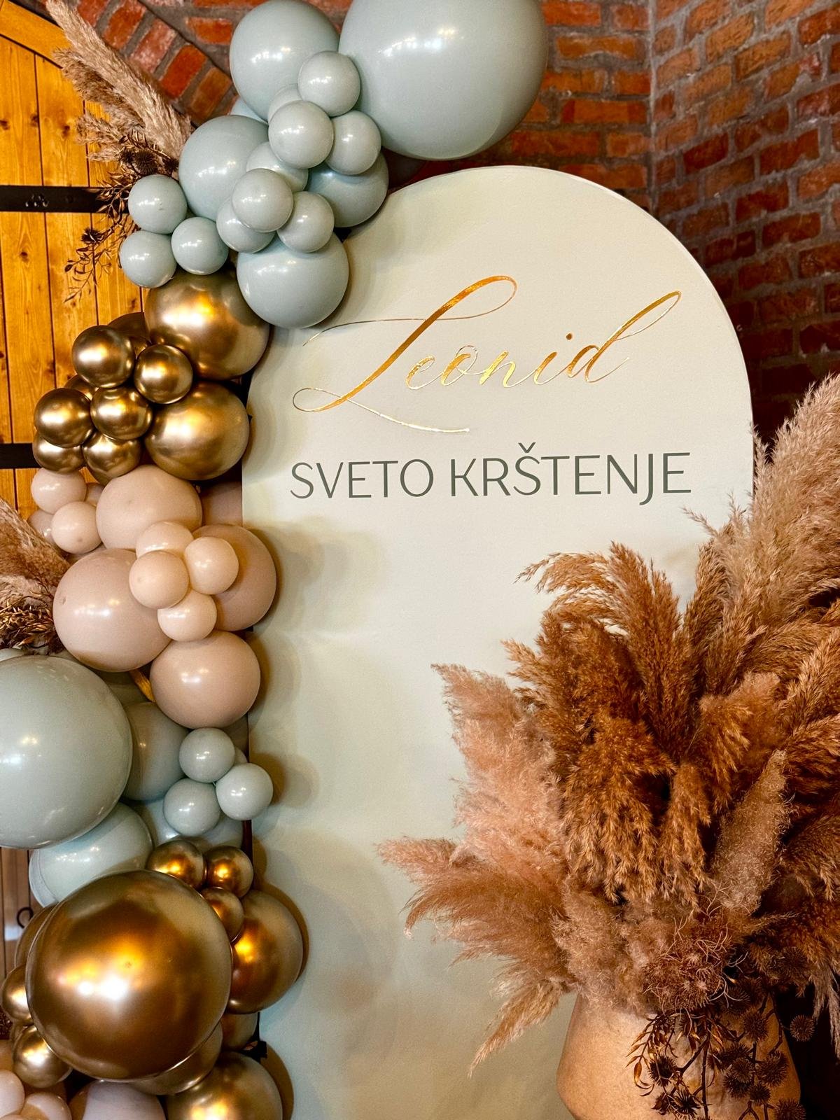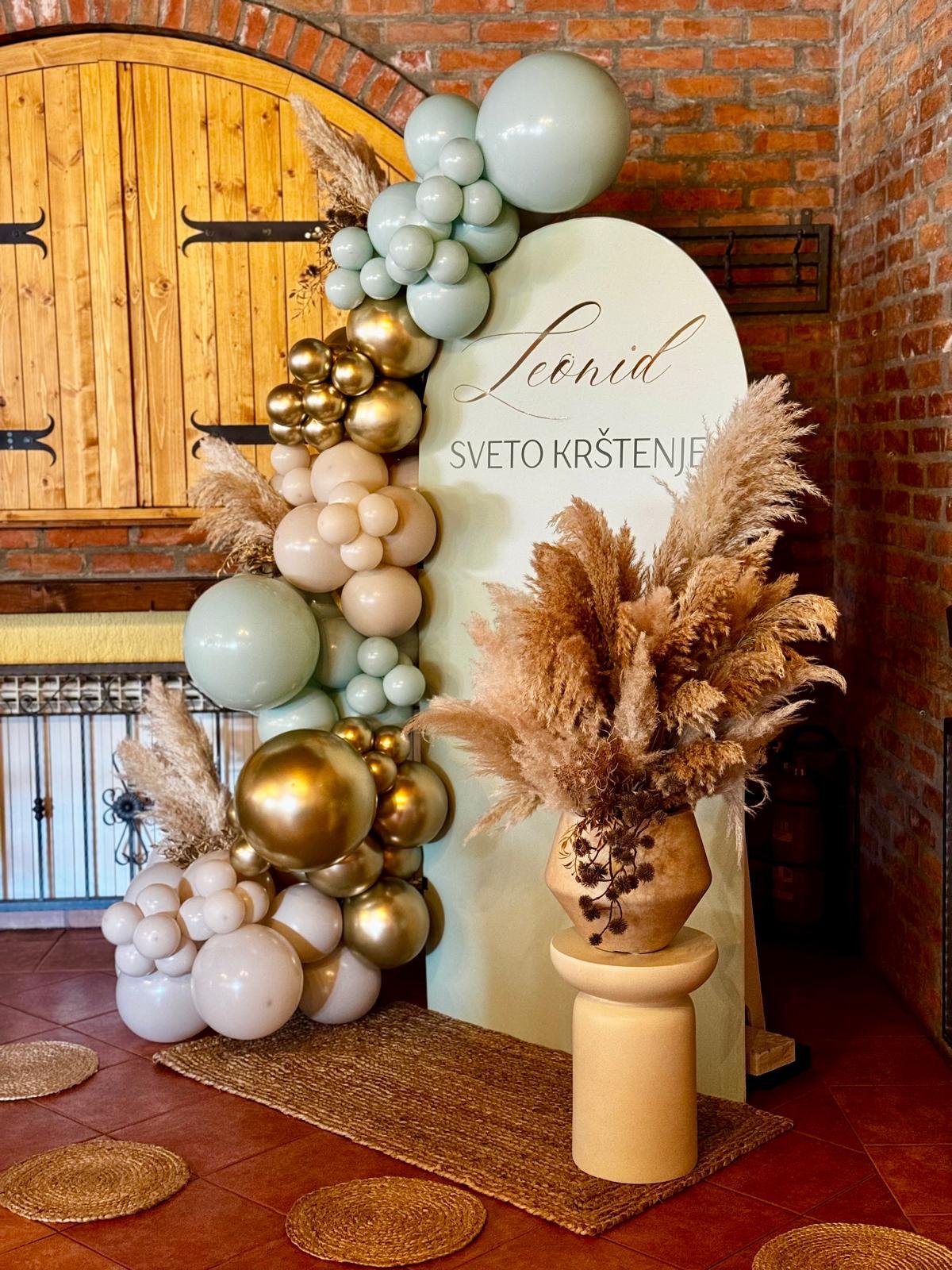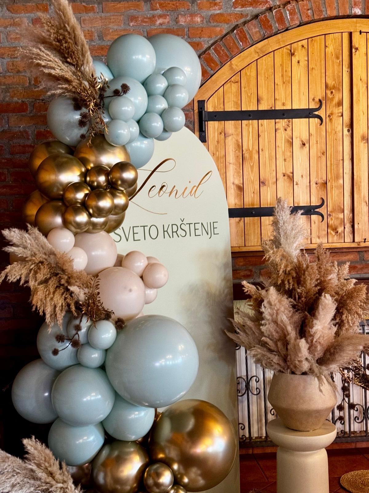 Blue & Gold Pampas Dream Dekoracija za Leonidovo krštenje u baby blue tonovima sa zlatnim detaljima i bogatim pampasom donosi spoj nježnosti i luksuza. Date: February 21, 2026 Category: Krštenje Share: