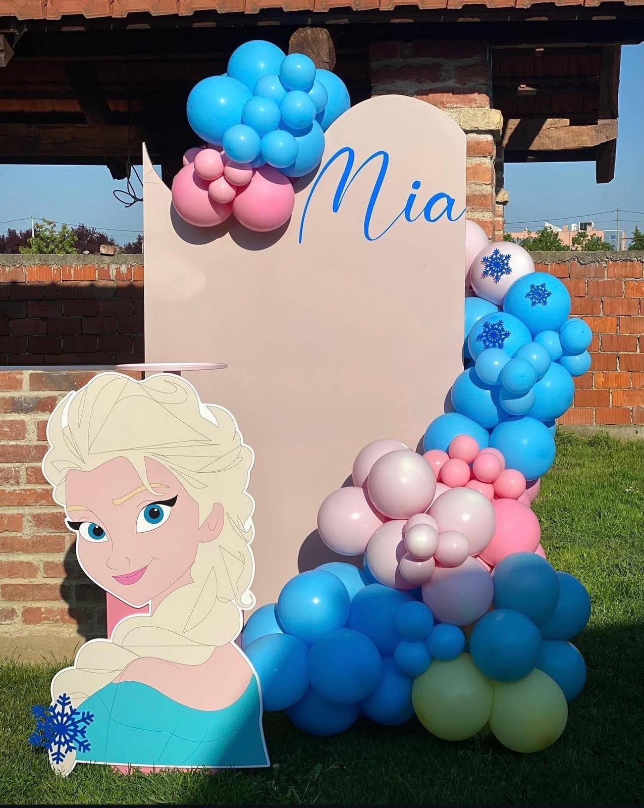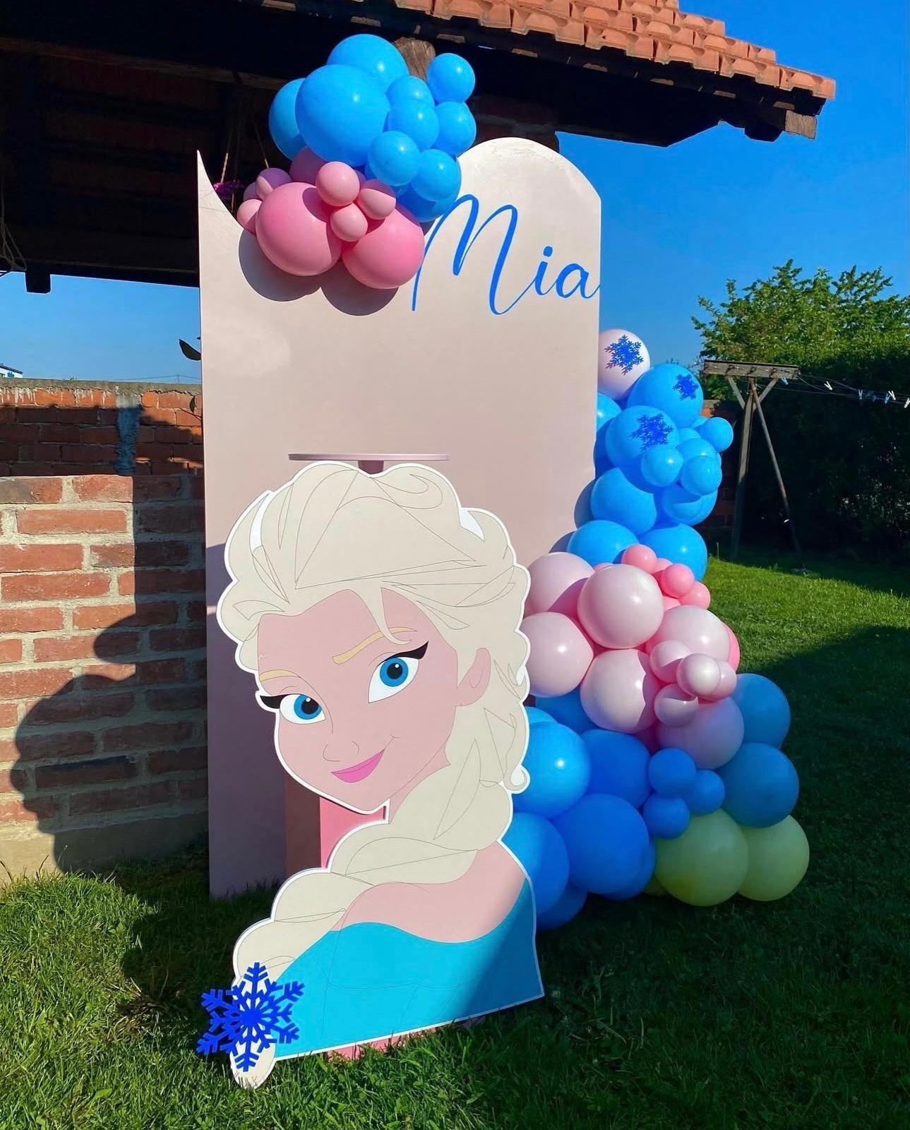 Tematska dekoracija na temu Else donosi pravu zimsku bajku na dječji rođendan. Lik Else i baloni u tematskim bojama stvaraju čarobnu atmosferu i savršenu kulisu za fotografije.